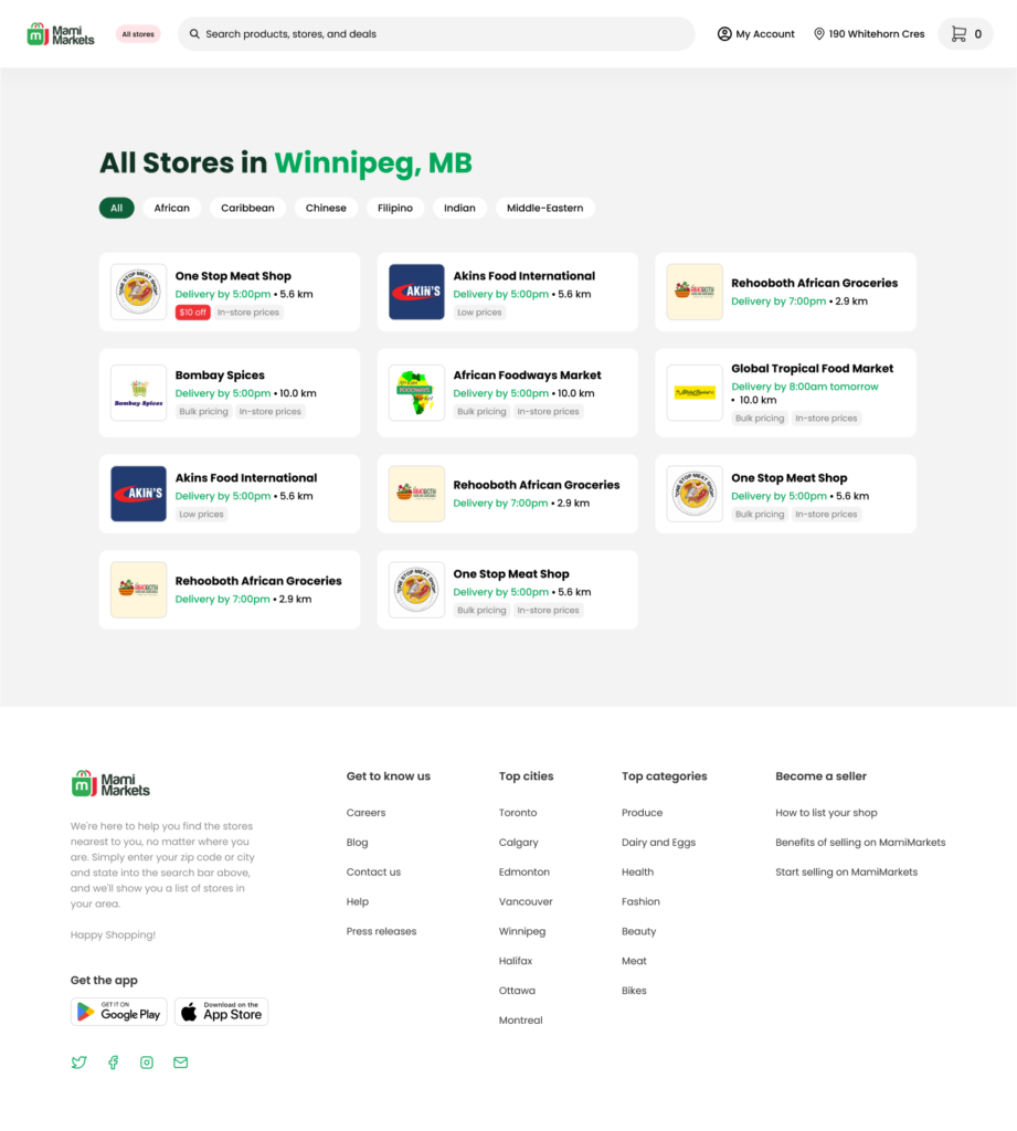 MamiMarkets.com is a marketplace built to empower local and ethnic stores, and independent sellers across Canada to sell directly to their customers via MamiMarkets.com and native iOS and Android mobile applications, creating a unified online shopping experience for both vendors and consumers.